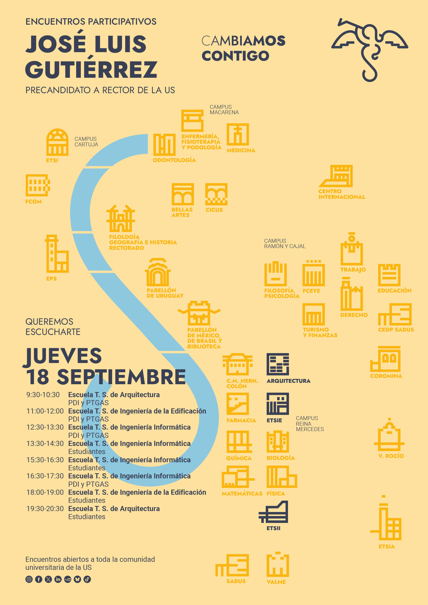 9:30 AM – 10:30 AM Escuela Técnica Superior de Ingeniería Lugar: Escuela Técnica Superior de Ingeniería Colectivo: PDI – PTGAS Centros: ETSI, MANTENIMIENTO, CENTRO ANDALUZ DE METROLOGIA, CENTRO DE INVESTIGACIONES CIENTIFICAS ISLA CARTUJA (C.I.C.I.C.), CENTRO NACIONAL DE ACELERADORES, INSTITUTO DE MICROELECTRÓNICA DE SEVILLA